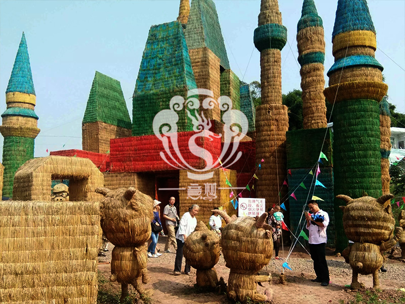 现在的精致稻草人艺术通常是由专业美术老师的造型放样,然后由焊工师傅焊接出立体造型造型,然后以稻草或者稻草绳为材料编捆制作而成。