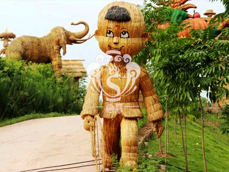 现在的精致稻草人艺术通常是由专业美术老师的造型放样,然后由焊工师傅焊接出立体造型造型,然后以稻草或者稻草绳为材料编捆制作而成。