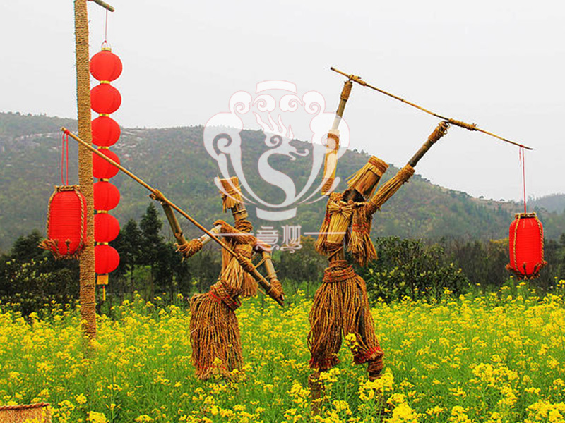 现在的精致稻草人艺术通常是由专业美术老师的造型放样,然后由焊工师傅焊接出立体造型造型,然后以稻草或者稻草绳为材料编捆制作而成。